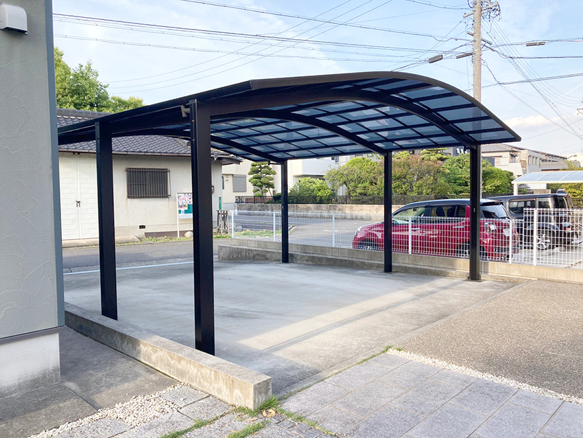 カラーは以前は茶系でしたが、今回は黒を使用することにより住まい全体が引き締まったスタイリッシュな印象を与えると共に、屋根材は熱線遮断効果のあるポリカを使用することで、夏場の駐車場の使いやすさに配慮しました