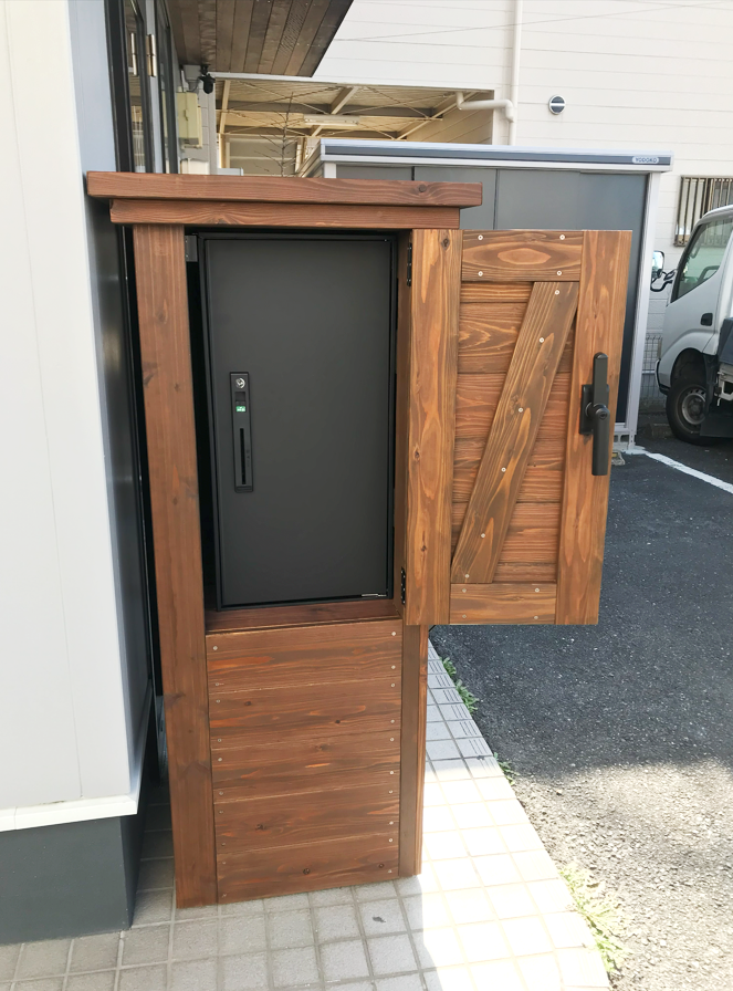 【リフォーム外構】 | 天然木宅配ボックスカバー工事一式 | I市 店舗N