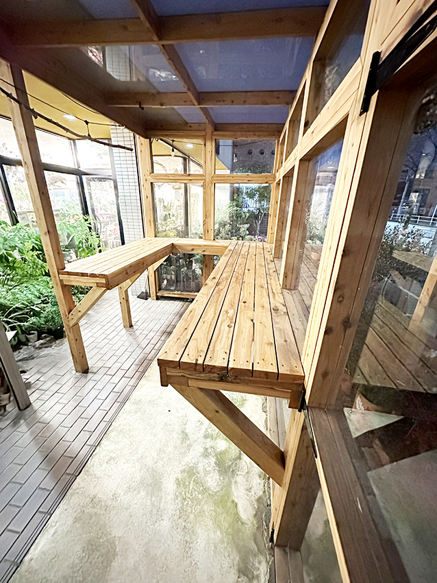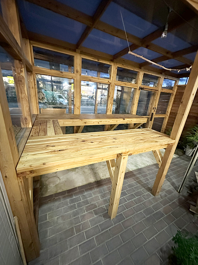 天然木を使用した店舗内棚工事一式を行いました。店舗内の空間寸法に合わせ、作業台兼用の棚を造作し、使いやすいレイアウトとしています。奥行きや高さを調整することで、作業のしやすさと収納力を確保。天然木の風合いが、店舗内にやわらかく温かみのある印象を与えています。